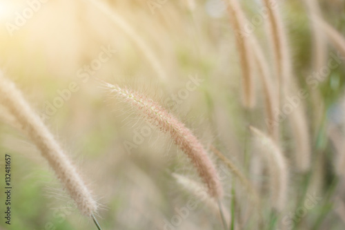 © THEGOT, Fototapeta premium Grass flower on the meadow at sunlight nature background spring