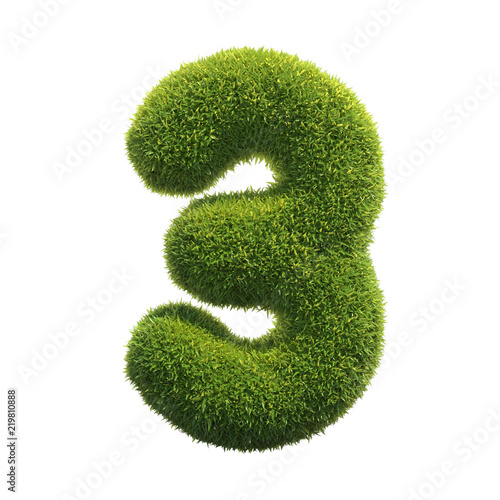 © koya979, Fototapeta premium Grass font 3d rendering number 3