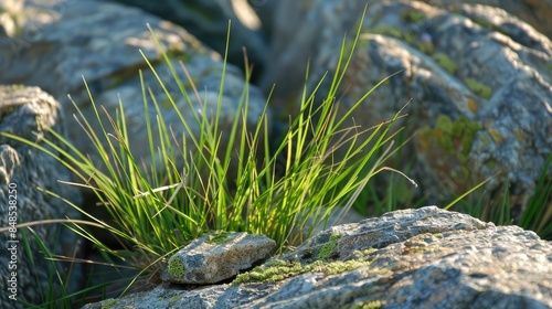 © TheWaterMeloonProjec, Obraz premium Grass grows independently among rocks