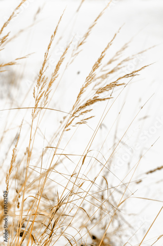 © Мария Морозова, Fototapeta premium grass in the wind. minimalistic field grasses in winter in beige colors