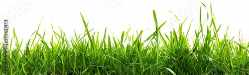 Obraz premium Grass isolated on white background, green grass border banner design. Spring or summer landscape