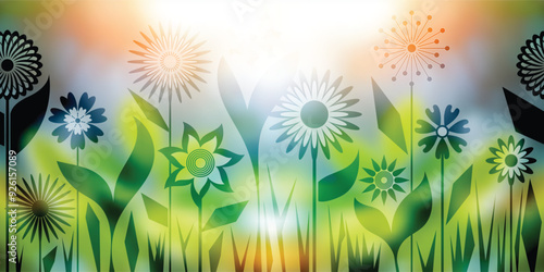 © Valerii, Obraz premium Grass on a summer, morning, bright meadow, vector illustration, seamless border, banner