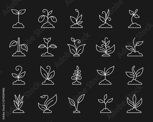 © Suesse, Fototapeta premium Grass simple white line icons vector set