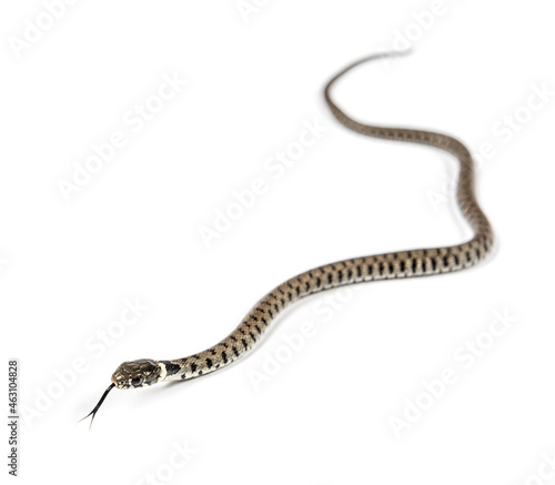 Naklejka premium Grass snake, Natrix natrix, Isolated on white