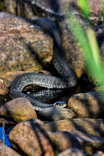 © hakoar, Fototapeta premium Grass snake on the shore