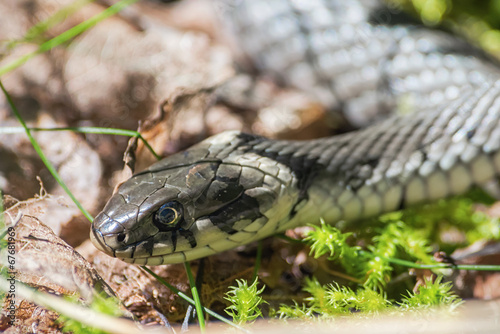 © stefanholm, Obraz premium Grass snake or Natrix natrix head