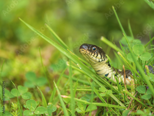 © Stephan Morris , Obraz premium Grass Snake Resting in Grass