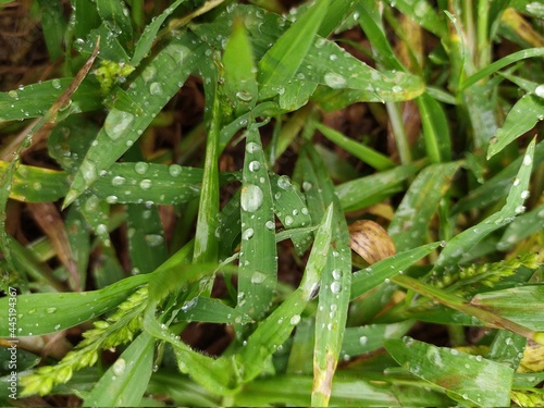 Naklejka premium Grass with pearl like water droplets