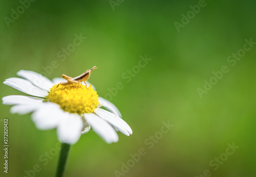Obraz premium Grasshopper on a chamomile flower