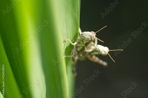 © pangcom, Naklejka premium grasshopper on a leaf