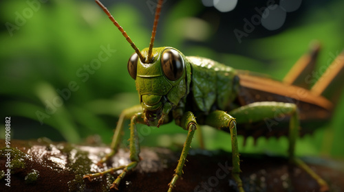 © ArtProduction, Fototapeta premium grasshopper on a leaf