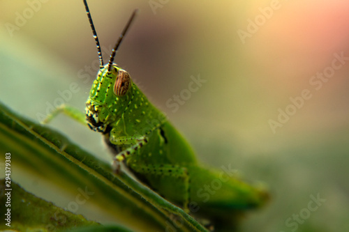 © Theeranad, Fototapeta premium grasshopper on leaves in nature graden caelifera
