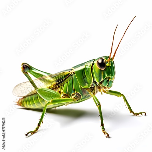 © Toseef, Fototapeta premium Grasshopper on white background, AI Generated