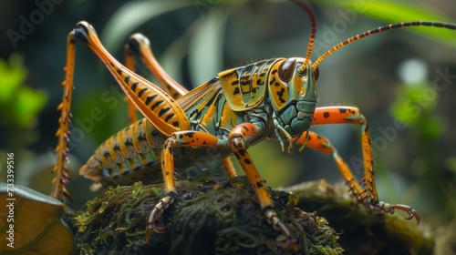 Fototapeta premium grasshopper's powerful hind legs, showcasing their intricate structure and...