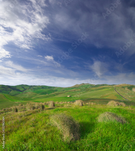 © ollirg, Fototapeta premium Grassland Against Cirrus Cloudscape