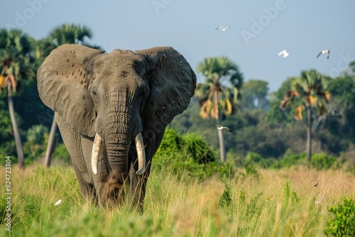© fanjianhua, Obraz premium Grassland and African Elephants