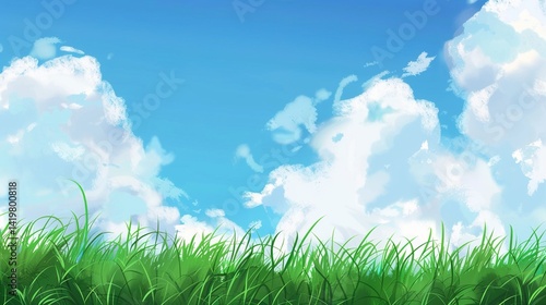 Fototapeta premium Grassland and White Clouds Natural Background: A Serene Tapestry of Earth and...