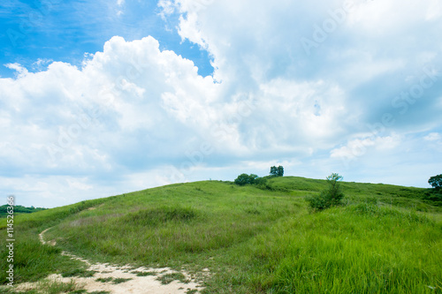 Obraz premium grassland with blue sky and white clouds