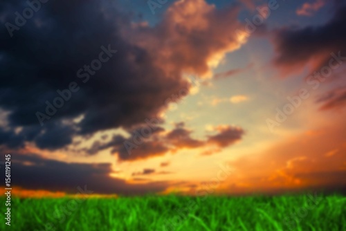 © vectorfusionart, Obraz premium Grassy field against sky during sunset