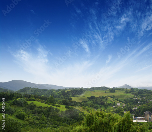 © Alekss, Fototapeta premium grassy field and hills