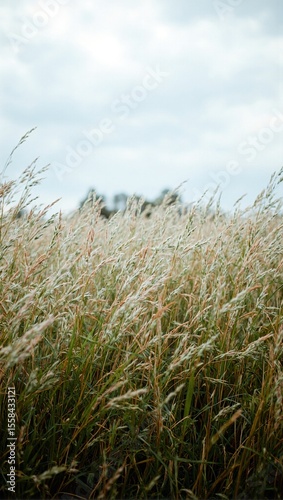 © Stonks, Fototapeta premium Grassy field under cloudy sky