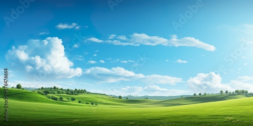 © Wall Art Galerie, Obraz premium Grassy hills under blue sky with clouds