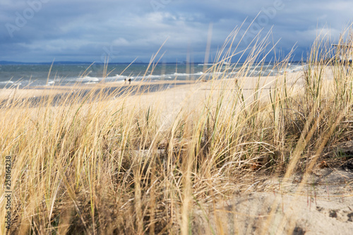 © kelifamily, Obraz premium Grassy sand dunes with dramatic sky on the Baltic Sea on the island of Usedom. Germany