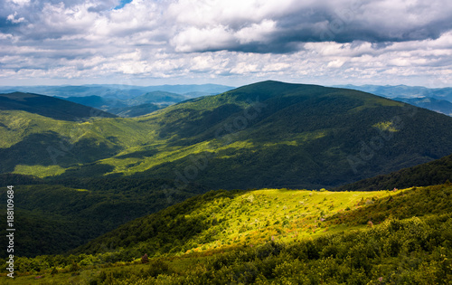 © Pellinni, Obraz premium grassy slopes of Carpathian mountains. beautiful summer landscape on a cloudy day. location Runa mountain, Ukraine