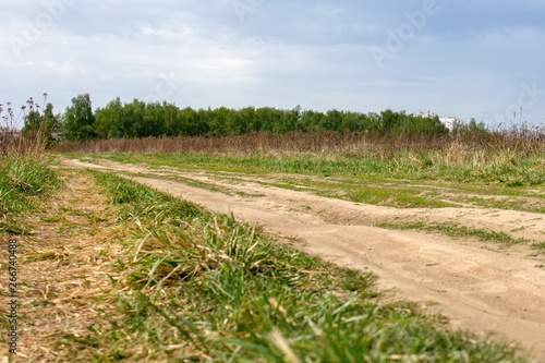© Евгений Дорганев, Obraz premium Grassy terrain with dirt road