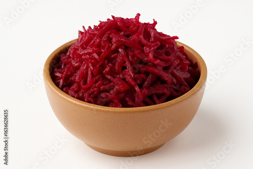 © PRABHU, Fototapeta premium Grated beetroot in ceramic bowl isolated on white stock photo