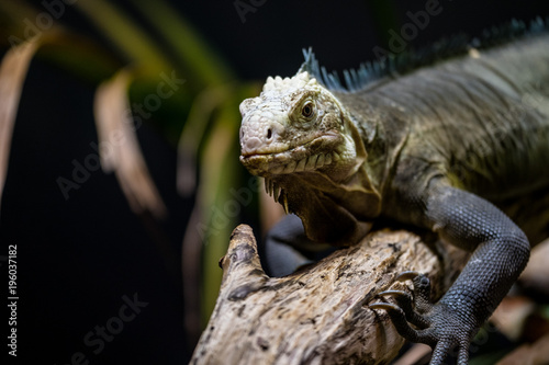 Obraz premium Graue Echse sitzt auf einem Ast