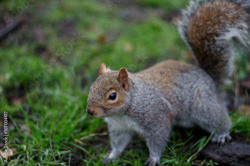 Fototapeta premium Graues Eichhörnchen im Park und auf dem Baum