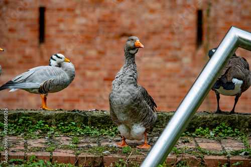 Obraz premium Graugänse an Land im Park
