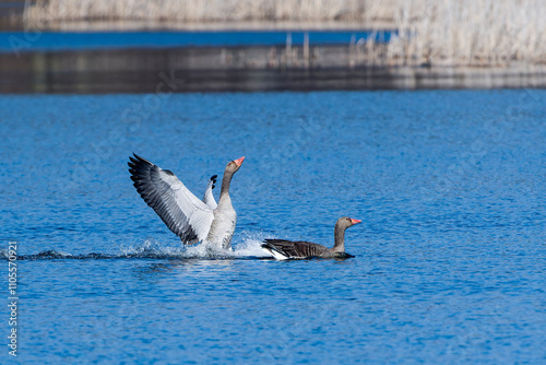 Fototapeta premium Graugans Pärchen während der Balz