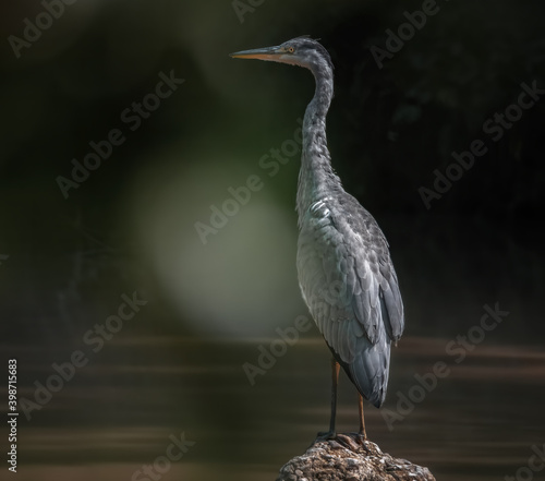 © Micha Trillhaase, Obraz premium Graureiher am Flussufer