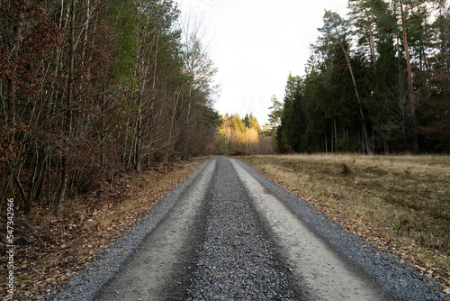 Fototapeta premium Gravel road between trees in the landscape on an autumn afternoon