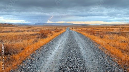 © Bejo Studio, Naklejka premium Gravel road stretches into storm-swept plains