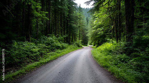 © Munanto, Naklejka premium Gravel Road Through Lush Green Forest