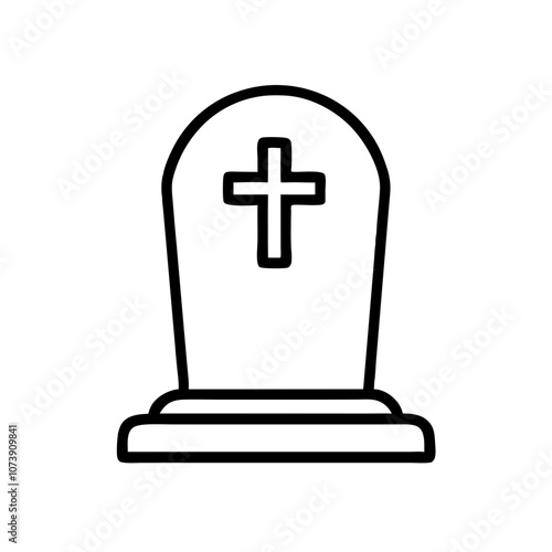 Fototapeta premium Gravestone Icon with Cross Symbol Outline