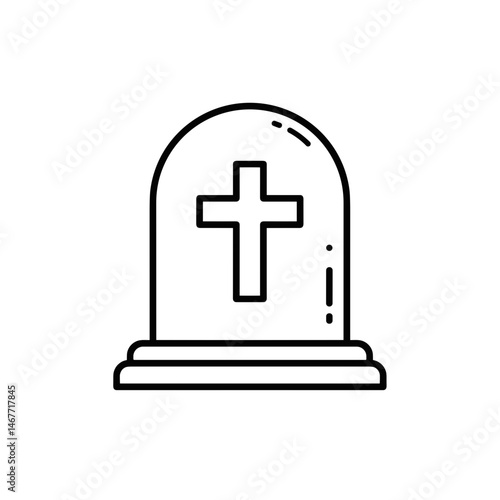 © Igor, Fototapeta premium Gravestone with cross outline on white background
