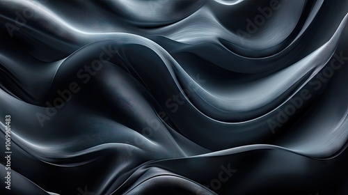 © Nijat, Obraz premium Gray and black waves create an abstract digital design, emphasizing music in a captivating 3D illustration, with space for creative text or additional elements.
