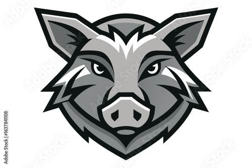 Obraz premium Gray and black wild boar head has an aggressive expression and is symmetrical