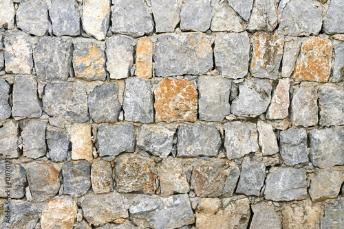 © R, Fototapeta premium Gray and brown wall with stone masonry, background, texture