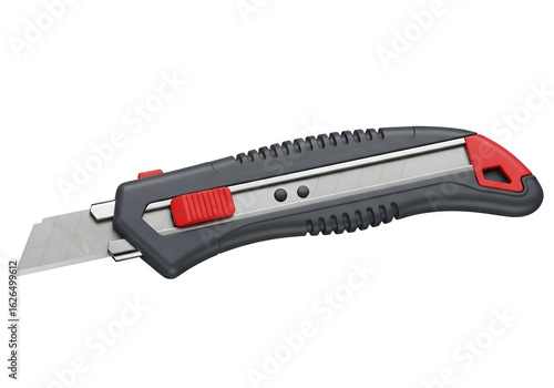 © kalam, Obraz premium Gray and red utility knife with a retractable blade.
