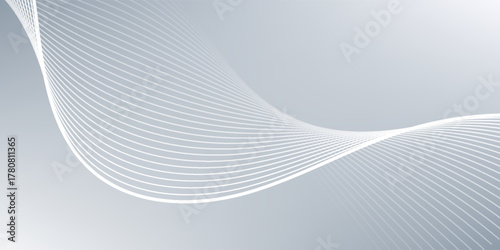 © imaamut, Naklejka premium Gray and white abstract background with flowing particles. line shape background. abstract wavy lines background.