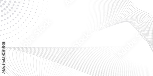 Fototapeta premium Gray and white abstract background with flowing wave line. Digital future...