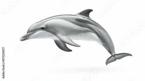 Fototapeta premium Gray and white dolphin with a smooth body, captured mid-leap, looking forward, full-length, centered, isolated on a white background