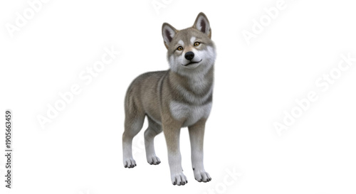 © I'm_coming, Obraz premium Gray and white Shiba Inu dog standing front view on white studio background