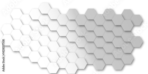 © Afridi, Obraz premium Gray and wite hexagon geometric pattern poster vector.