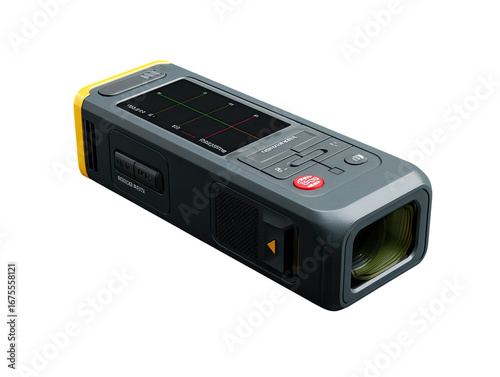 © Haer, Fototapeta premium Gray and yellow handheld device with screen and controls